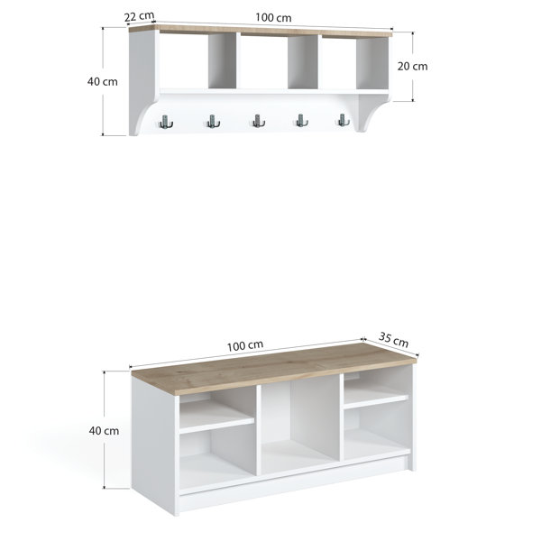 Compared to other items at this price point the product is not very well made. The three holes above the coat hooks at the top are not equal distances and this is not mentioned in the description or diagrams. I ended up glueing most of it together as it just didn’t feel strong enough. Would not recommend.