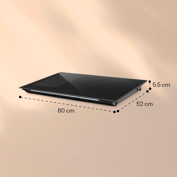 power can quickly be increased to up to 3000W. The glass-ceramic hob is operated easily with an integrated SenseControl touch panel with touch-to-slide control for power control and a digital display. This gives the kitchen surfaces a seamless finish,