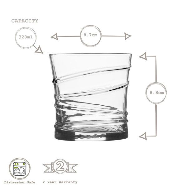 The Ring range of Whisky Glasses from LAV serves as a representation of the company's ongoing commitment to bring contemporary design and innovative styling to your drinking glassware. As the name suggests, each glass in the collection has been delicately adorned with a series of rings that appear to hang loosely around the midriff at different angles, creating an intoxicating sense of dynamic movement, playfulness and freedom - perfect for anybody looking to bring some lightness and levity to their home decor. The 320ml capacity of these glasses makes them perfect for serving your favourite scotch, bourbon or whiskey - either straight-up or on the rocks - as well as bottled beers, soft drinks and juices. As with all LAV glassware, the Ring collection is dishwasher safe for hassle free cleaning. Whether shopping for business or pleasure, when it comes to products that effortlessly straddle the gap between fashion and function, the Ring collection of Drinking Tumbler Glasses is sure to fill your home with LAV.